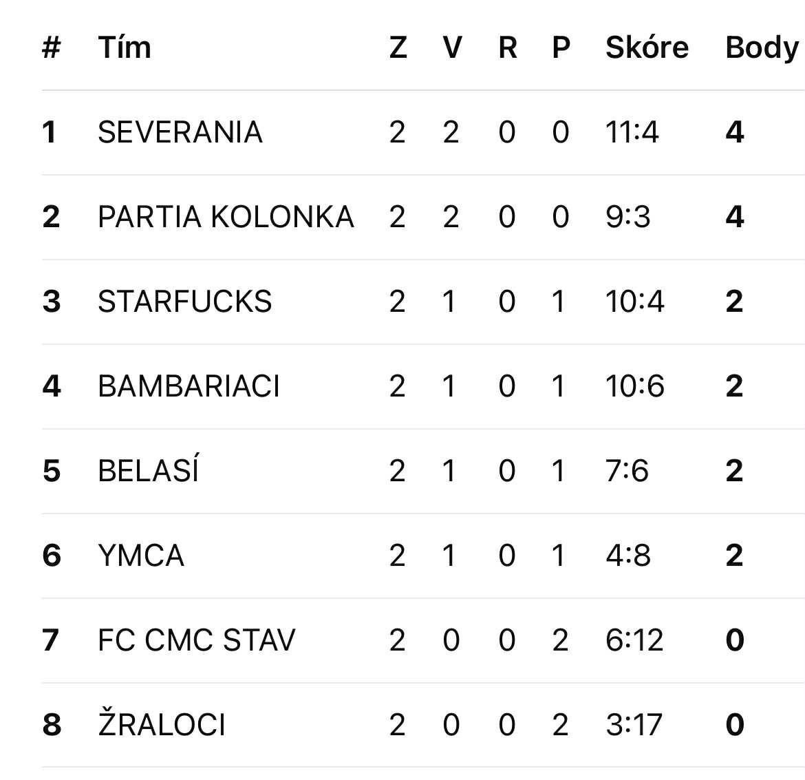 Tabuľka po 2,kole